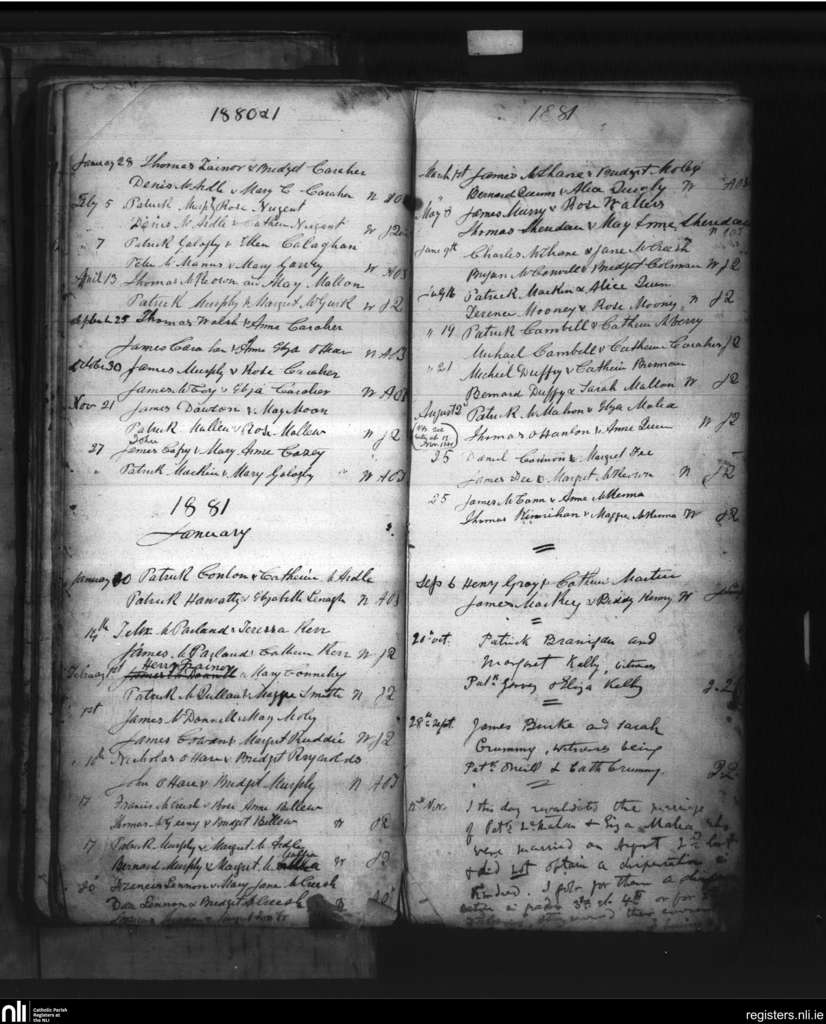 Creggan Lower; County of Armagh; Archdiocese of Armagh. Marriages, Jan. 1880 to Nov. 1881