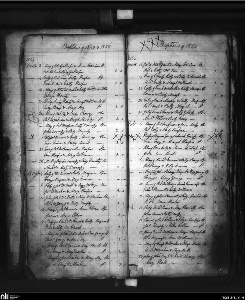 Creggan Lower; County of Armagh; Archdiocese of Armagh. Baptisms, Dec. 1849 to Feb. 1850