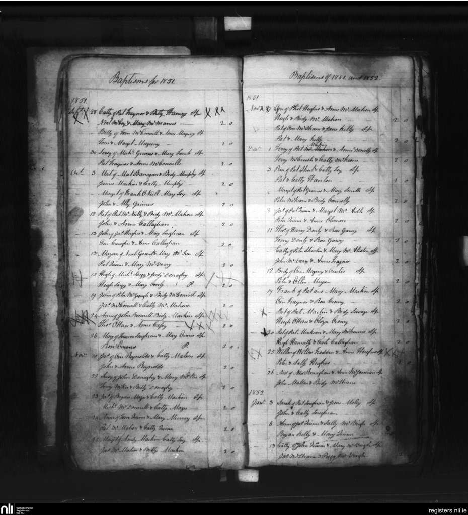 Creggan Lower; County of Armagh; Archdiocese of Armagh. Baptisms, Sep. 1851 to Jan. 1852