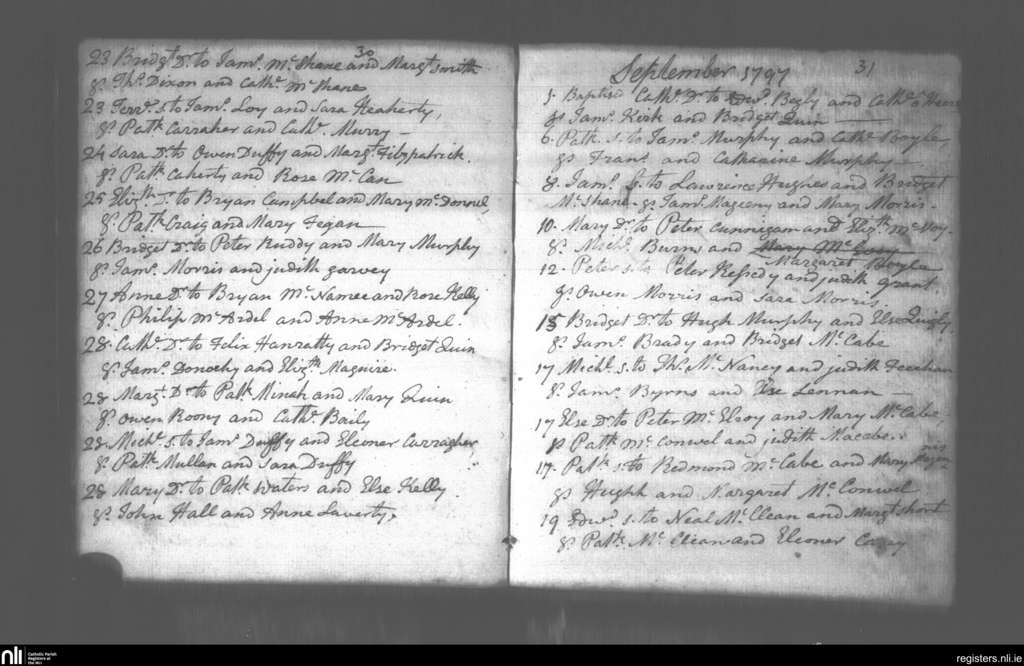 Creggan Upper; County of Armagh, Louth; Archdiocese of Armagh. Baptisms, Aug. 1797 to Sep. 1797