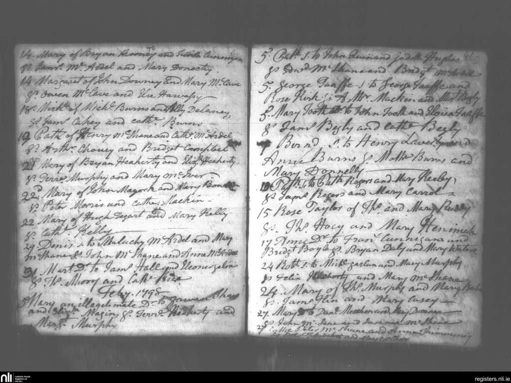 Creggan Upper; County of Armagh, Louth; Archdiocese of Armagh. Baptisms, Jan. 1798 to Feb. 1798