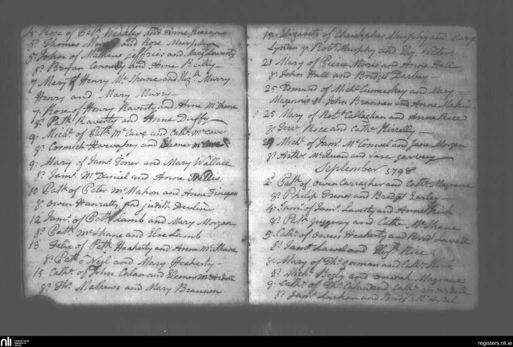 Creggan Upper; County of Armagh, Louth; Archdiocese of Armagh. Baptisms, Aug. 1798 to Sep. 1798