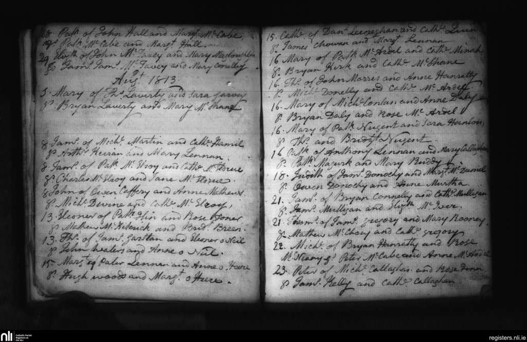 Creggan Upper; County of Armagh, Louth; Archdiocese of Armagh. Baptisms, July 1813 to Aug. 1813
