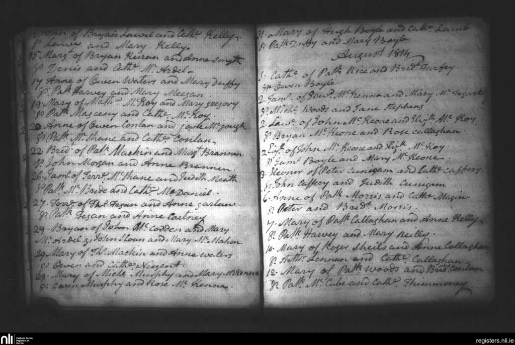 Creggan Upper; County of Armagh, Louth; Archdiocese of Armagh. Baptisms, July 1814 to Aug. 1814