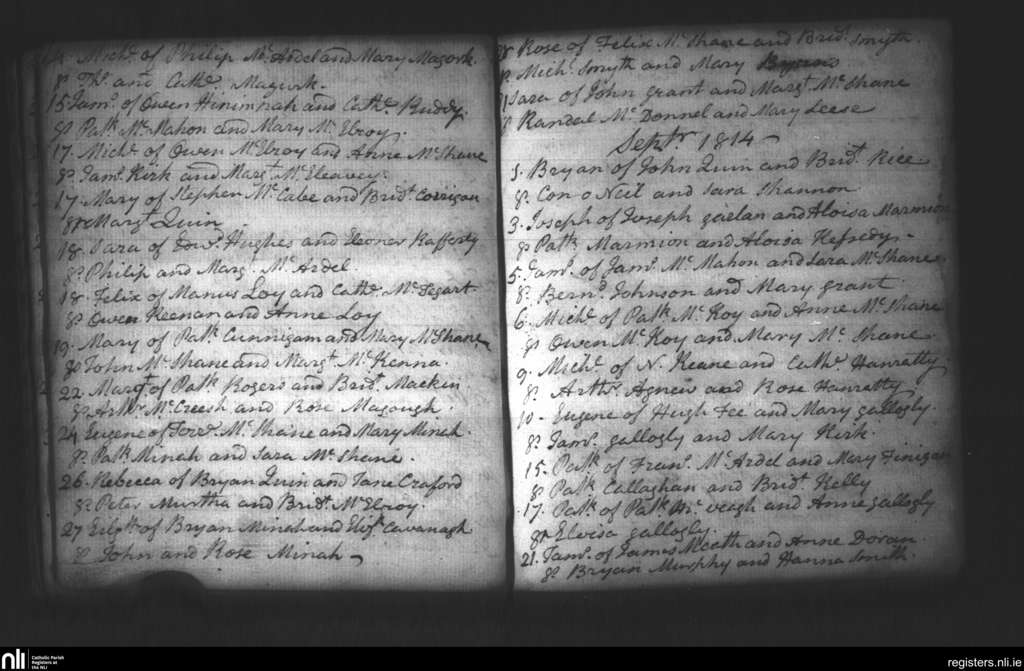 Creggan Upper; County of Armagh, Louth; Archdiocese of Armagh. Baptisms, Aug. 1814 to Sep. 1814