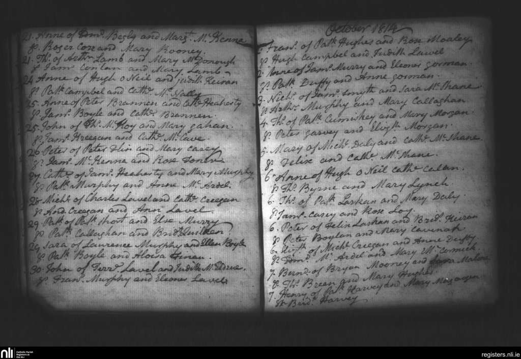 Creggan Upper; County of Armagh, Louth; Archdiocese of Armagh. Baptisms, Sep. 1814 to Oct. 1814