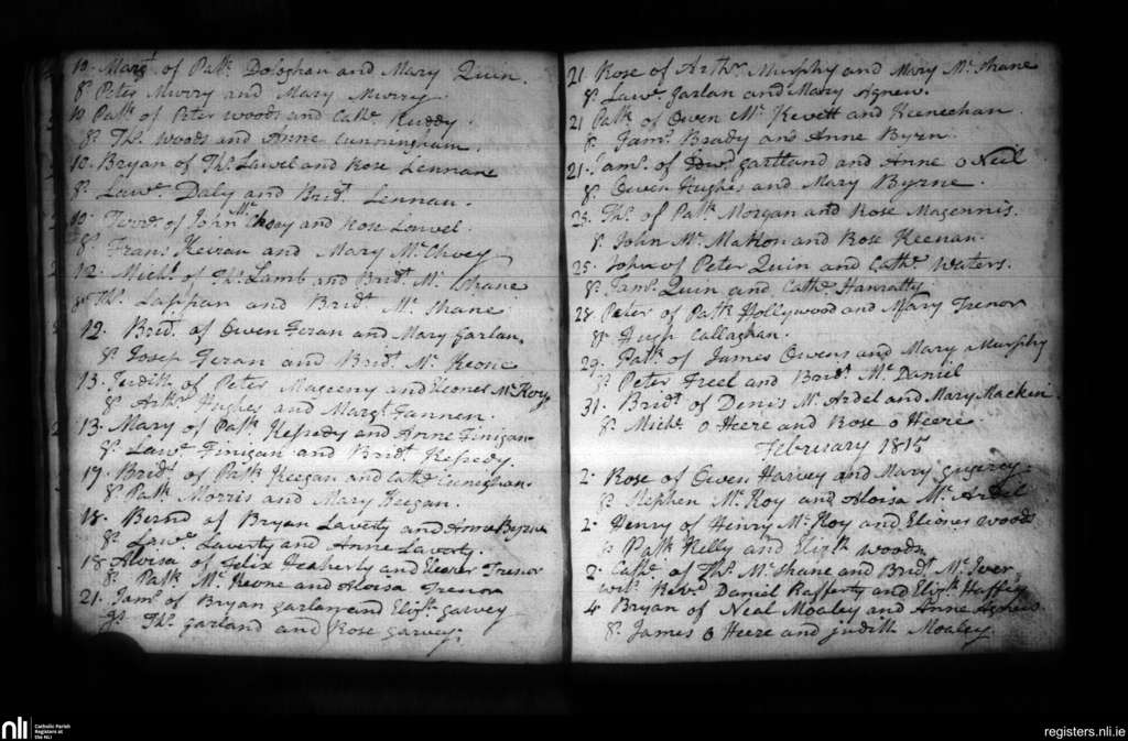 Creggan Upper; County of Armagh, Louth; Archdiocese of Armagh. Baptisms, Jan. 1815 to Feb. 1815