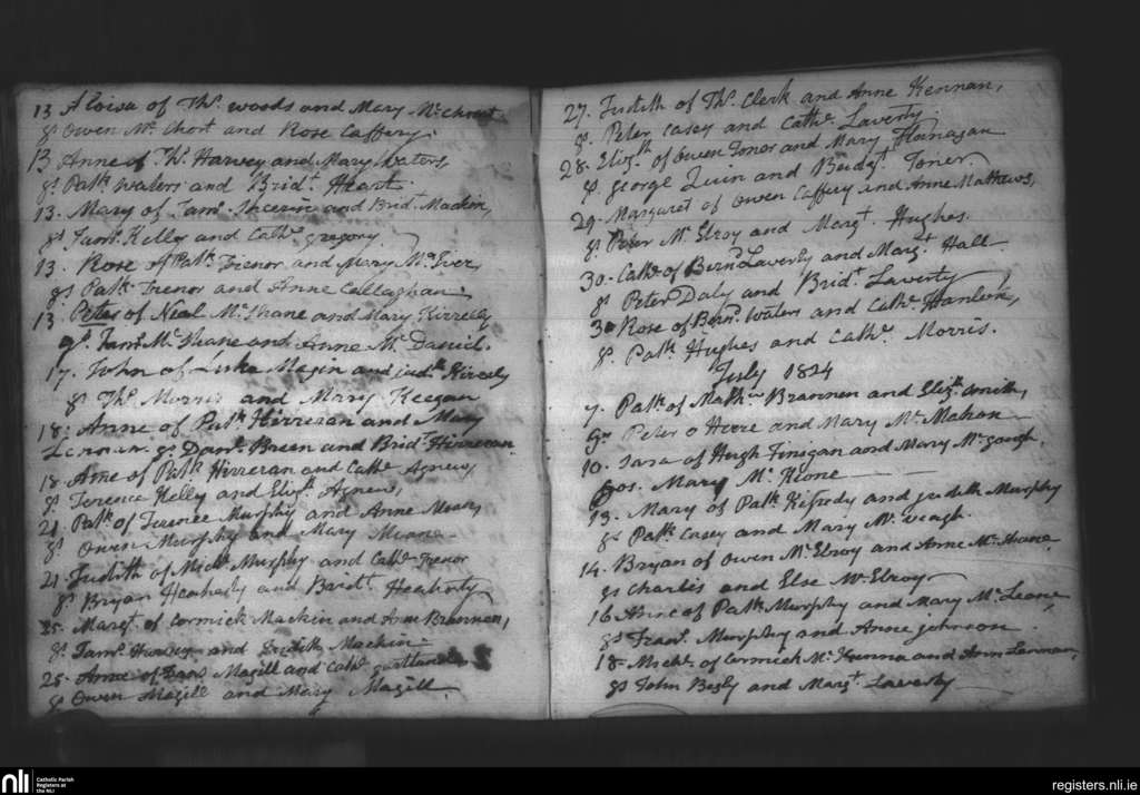 Creggan Upper; County of Armagh, Louth; Archdiocese of Armagh. Baptisms, June 1824 to July 1824