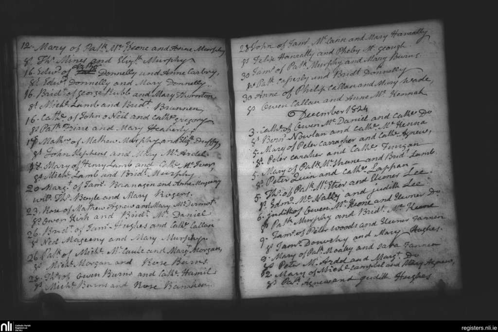 Creggan Upper; County of Armagh, Louth; Archdiocese of Armagh. Baptisms, Nov. 1824 to Dec. 1824