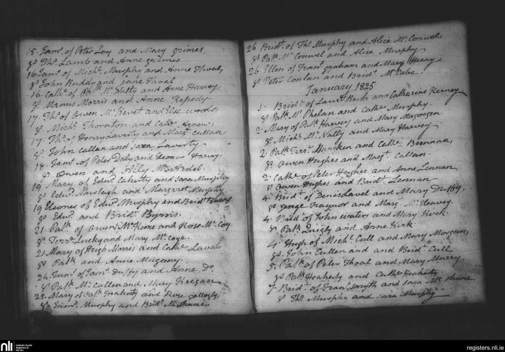 Creggan Upper; County of Armagh, Louth; Archdiocese of Armagh. Baptisms, Dec. 1824 to Jan. 1825