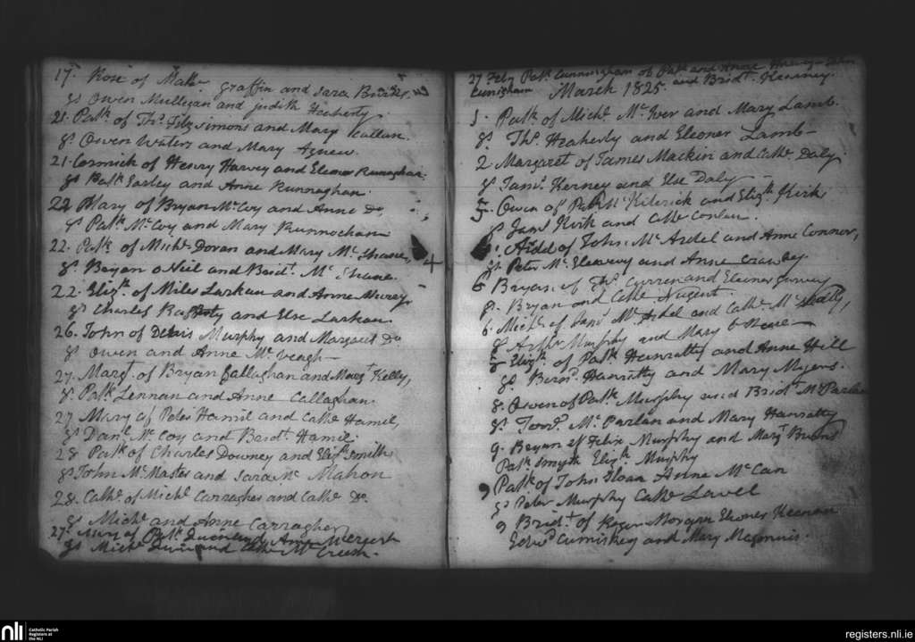 Creggan Upper; County of Armagh, Louth; Archdiocese of Armagh. Baptisms, Feb. 1825 to Mar. 1825