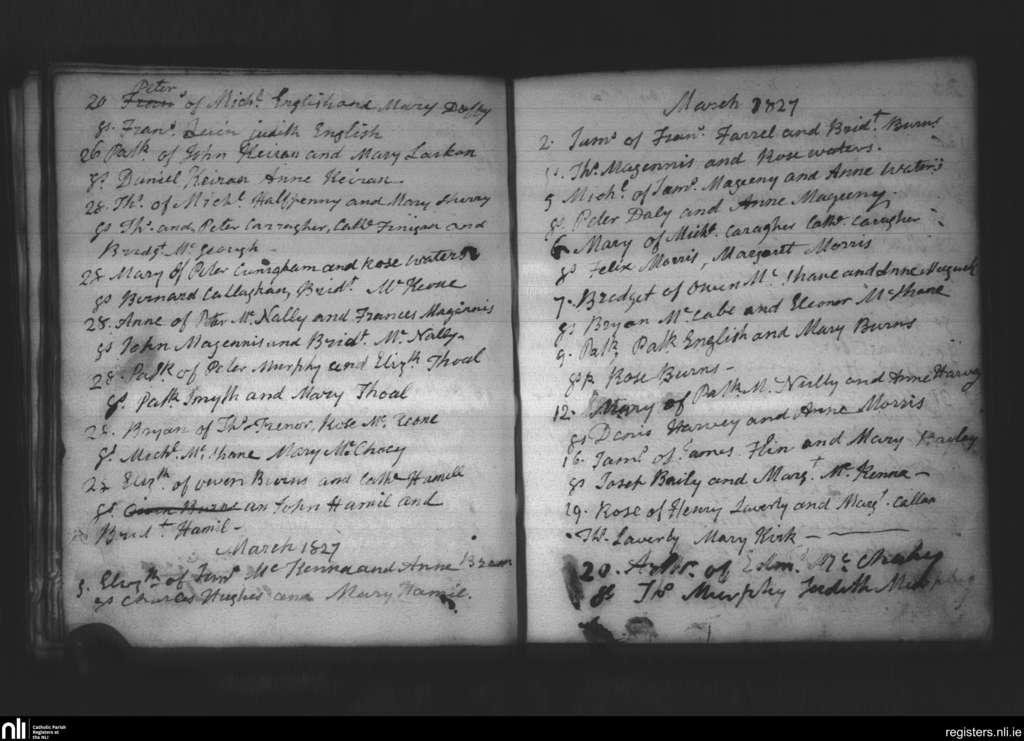 Creggan Upper; County of Armagh, Louth; Archdiocese of Armagh. Baptisms, Feb. 1827 to Mar. 1827