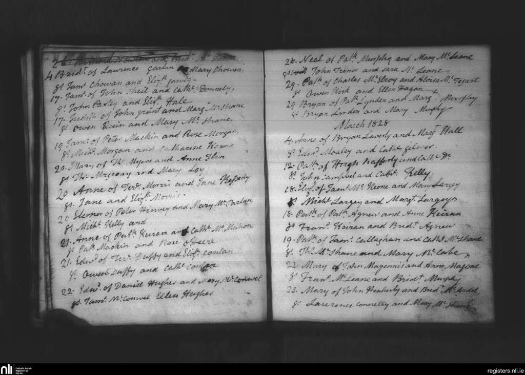 Creggan Upper; County of Armagh, Louth; Archdiocese of Armagh. Baptisms, Feb. 1828 to Mar. 1828