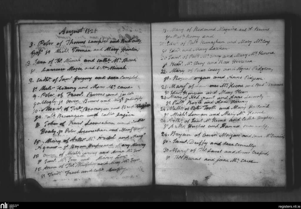 Creggan Upper; County of Armagh, Louth; Archdiocese of Armagh. Baptisms, Aug. 1828