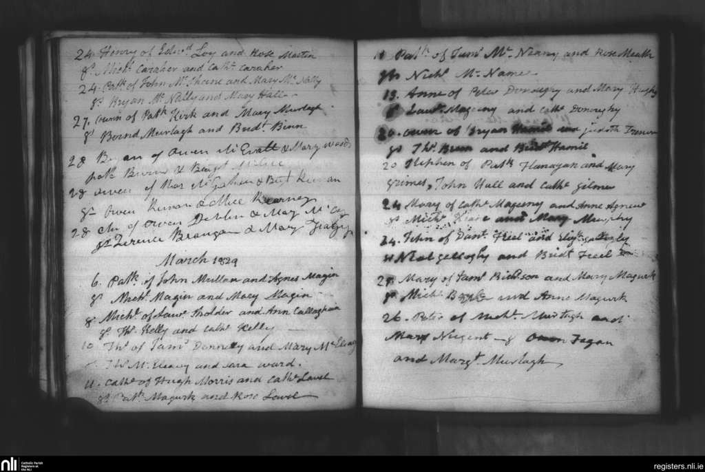 Creggan Upper; County of Armagh, Louth; Archdiocese of Armagh. Baptisms, Feb. 1829 to Mar. 1829
