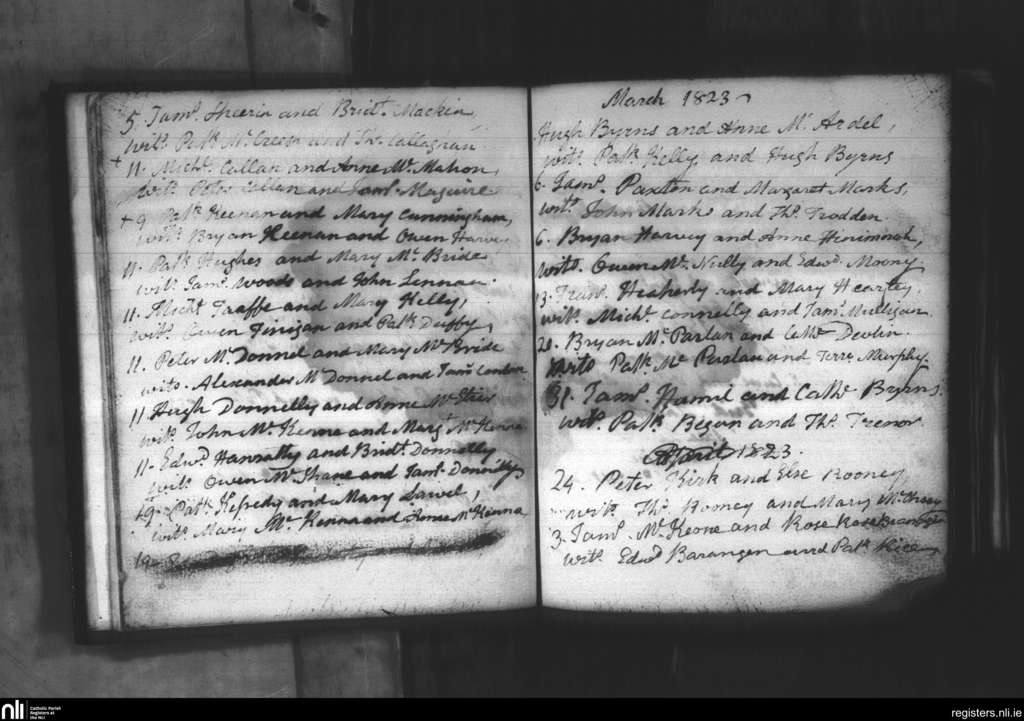 Creggan Upper; County of Armagh, Louth; Archdiocese of Armagh. Marriages, Feb. 1823 to Apr. 1823