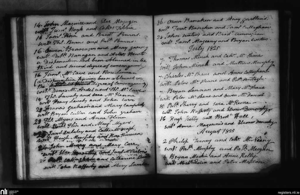 Creggan Upper; County of Armagh, Louth; Archdiocese of Armagh. Marriages, June 1825 to Aug. 1825