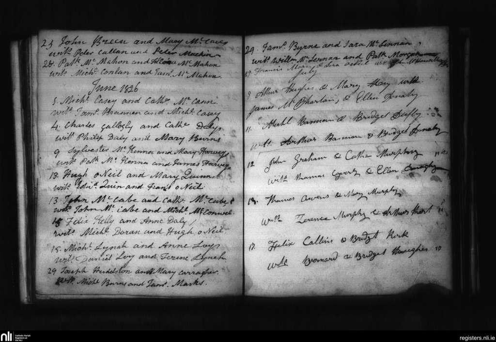 Creggan Upper; County of Armagh, Louth; Archdiocese of Armagh. Marriages, May 1826 to July 1826