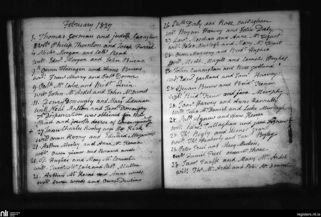 Creggan Upper; County of Armagh, Louth; Archdiocese of Armagh. Marriages, Feb. 1827