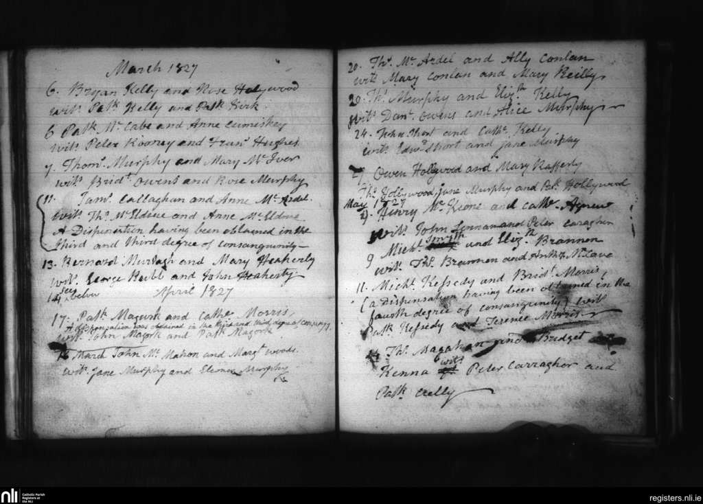 Creggan Upper; County of Armagh, Louth; Archdiocese of Armagh. Marriages, Mar. 1827 to May 1827
