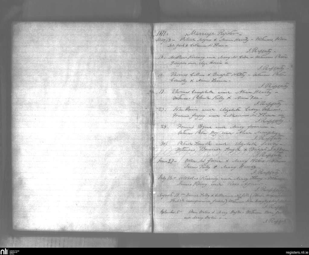 Creggan Upper; County of Armagh, Louth; Archdiocese of Armagh. Marriages, May 1871 to Sep. 1871