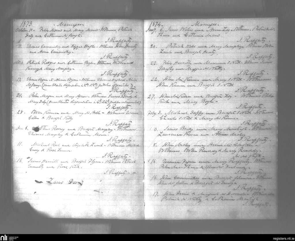 Creggan Upper; County of Armagh, Louth; Archdiocese of Armagh. Marriages, Oct. 1873 to Feb. 1874