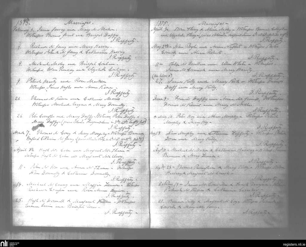 Creggan Upper; County of Armagh, Louth; Archdiocese of Armagh. Marriages, Feb. 1875 to Oct. 1875