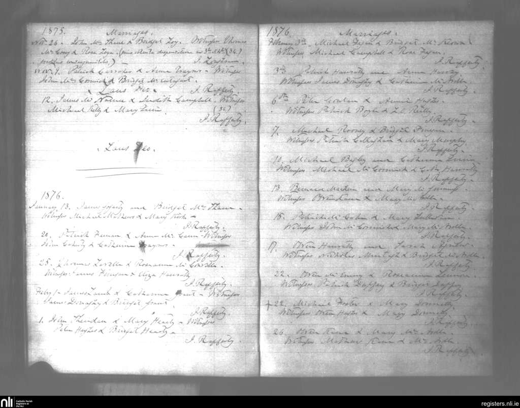 Creggan Upper; County of Armagh, Louth; Archdiocese of Armagh. Marriages, Nov. 1875 to Feb. 1876