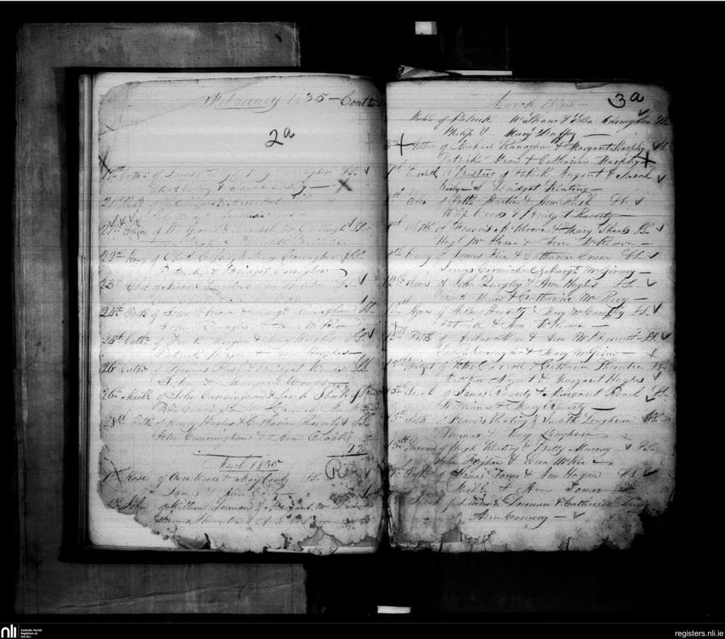 Derrynoose; County of Armagh; Archdiocese of Armagh. Baptisms, Feb. 1835 to Mar. 1835