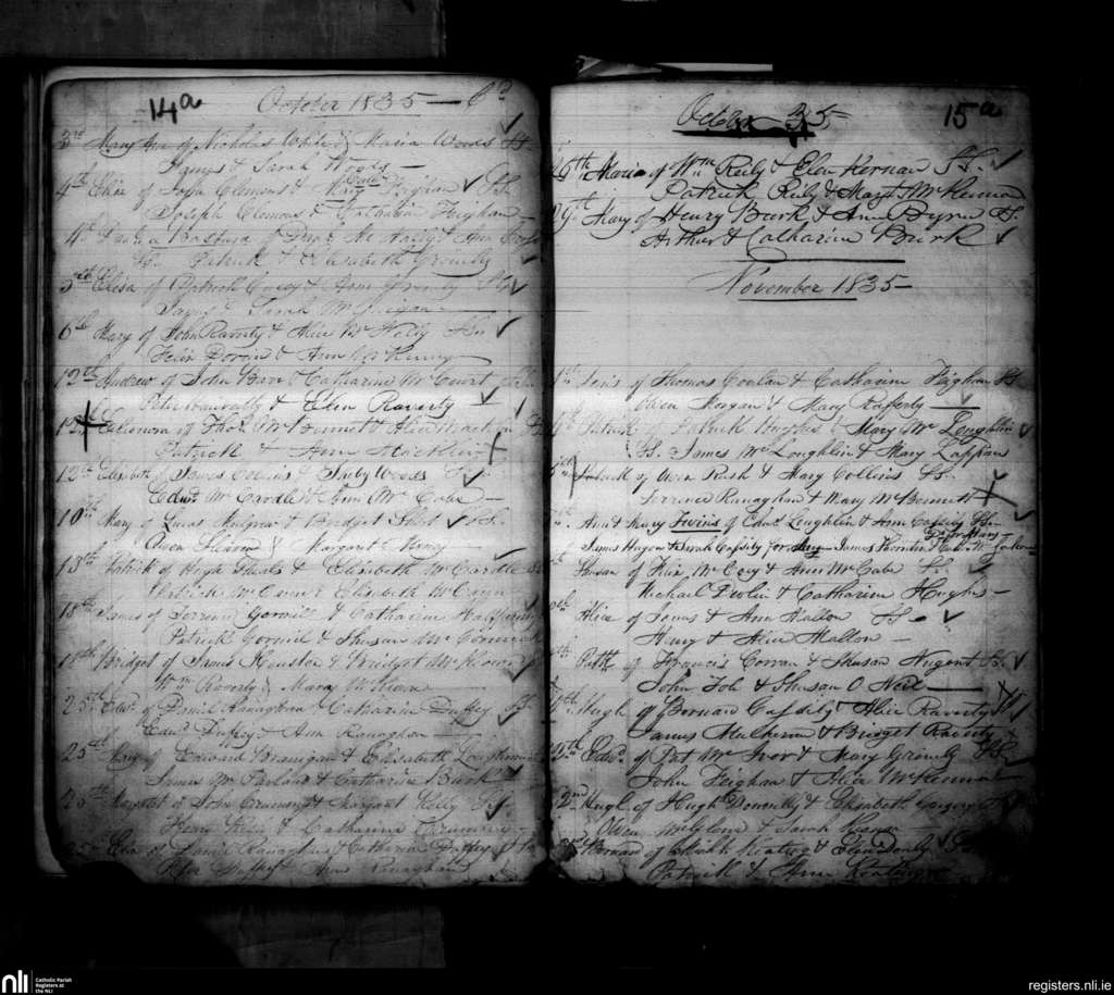 Derrynoose; County of Armagh; Archdiocese of Armagh. Baptisms, Oct. 1835 to Nov. 1835