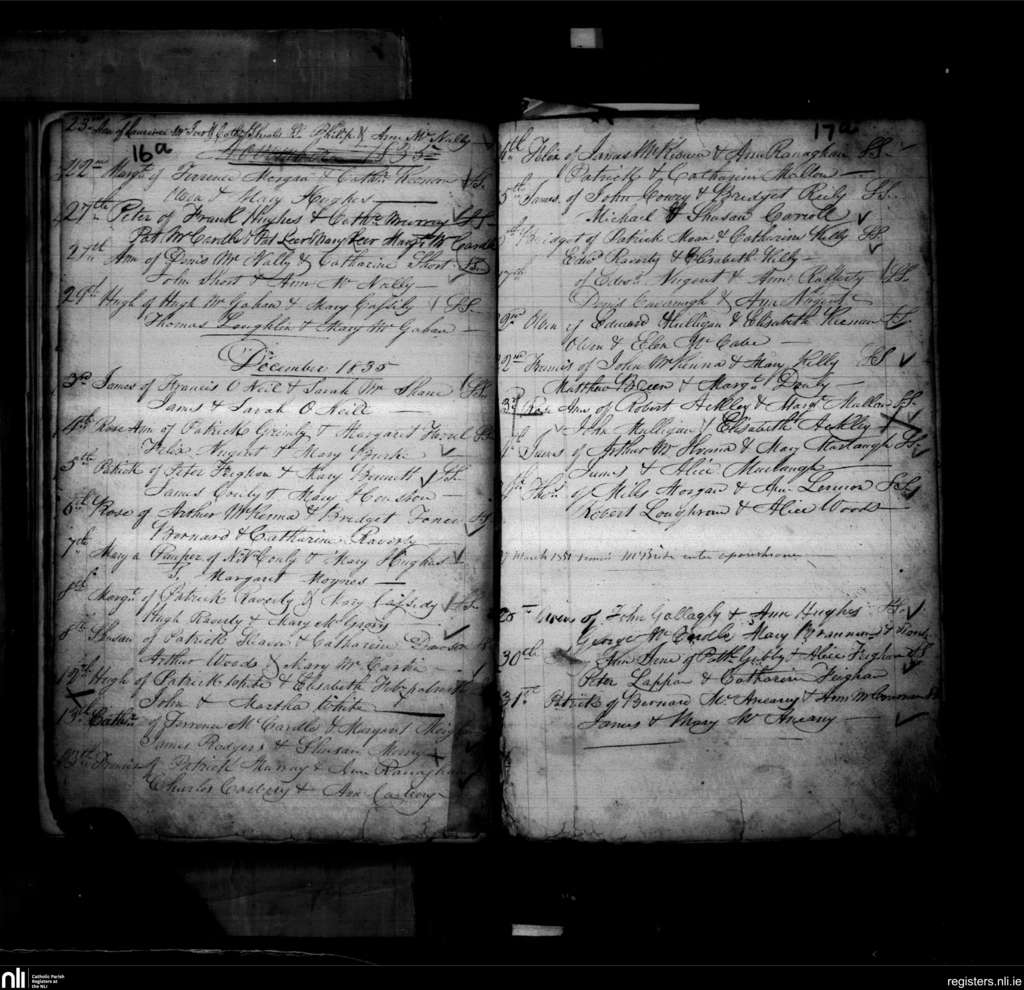 Derrynoose; County of Armagh; Archdiocese of Armagh. Baptisms, Nov. 1835 to Dec. 1835