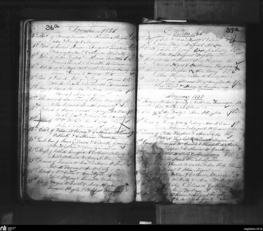 Derrynoose; County of Armagh; Archdiocese of Armagh. Baptisms, Dec. 1836 to Jan. 1837
