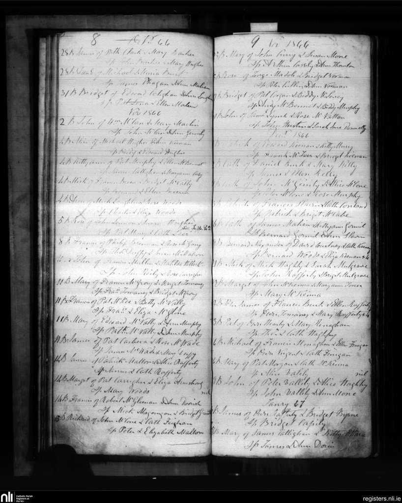 Derrynoose; County of Armagh; Archdiocese of Armagh. Baptisms, Oct. 1866 to Jan. 1867
