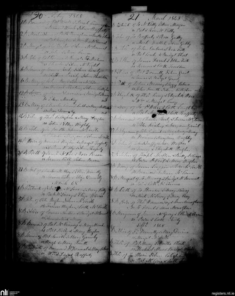 Derrynoose; County of Armagh; Archdiocese of Armagh. Baptisms, Feb. 1868 to Apr. 1868