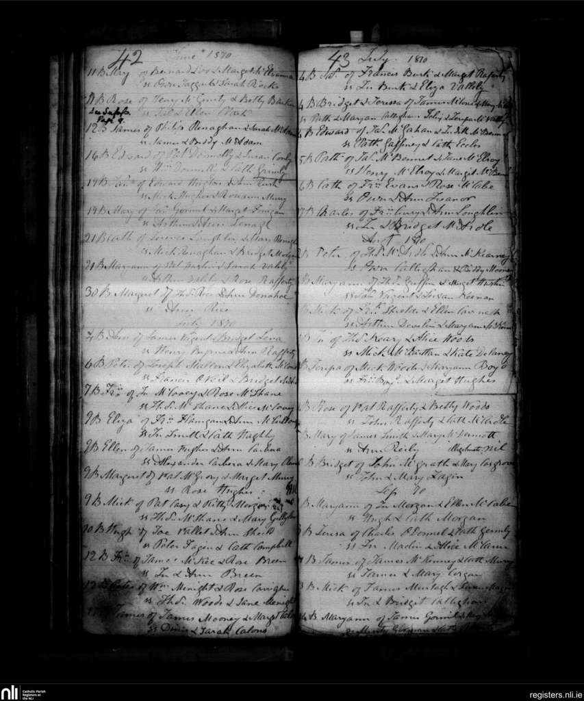 Derrynoose; County of Armagh; Archdiocese of Armagh. Baptisms, June 1870 to Sep. 1870