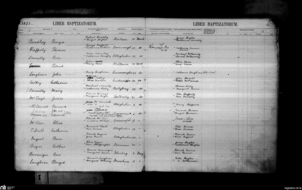 Donaghmore; County of Tyrone; Archdiocese of Armagh. Baptisms, Mar. 1871 to May 1871