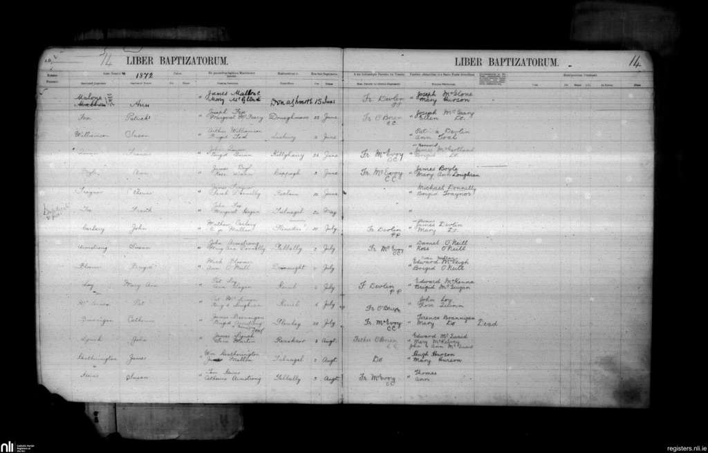 Donaghmore; County of Tyrone; Archdiocese of Armagh. Baptisms, June 1872 to Aug. 1872