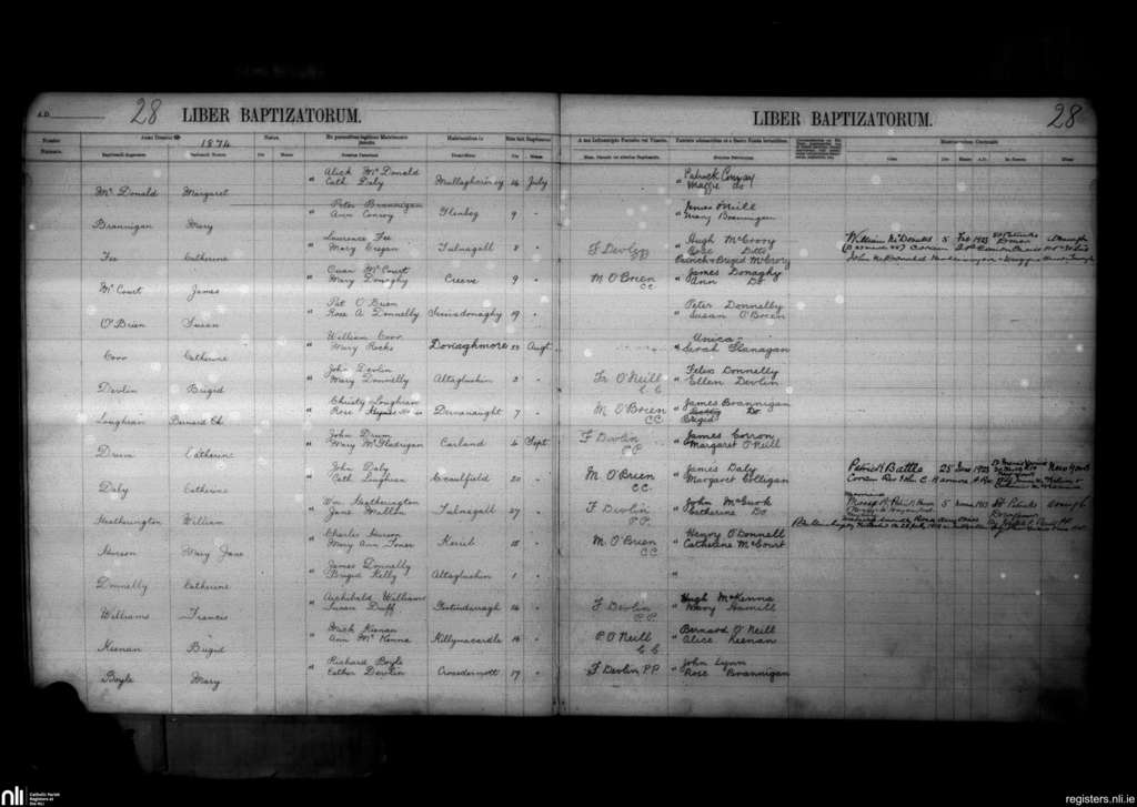 Donaghmore; County of Tyrone; Archdiocese of Armagh. Baptisms, July 1874 to Sep. 1874