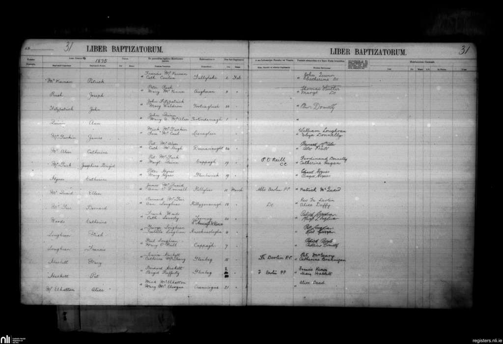 Donaghmore; County of Tyrone; Archdiocese of Armagh. Baptisms, Feb. 1875 to Mar. 1875
