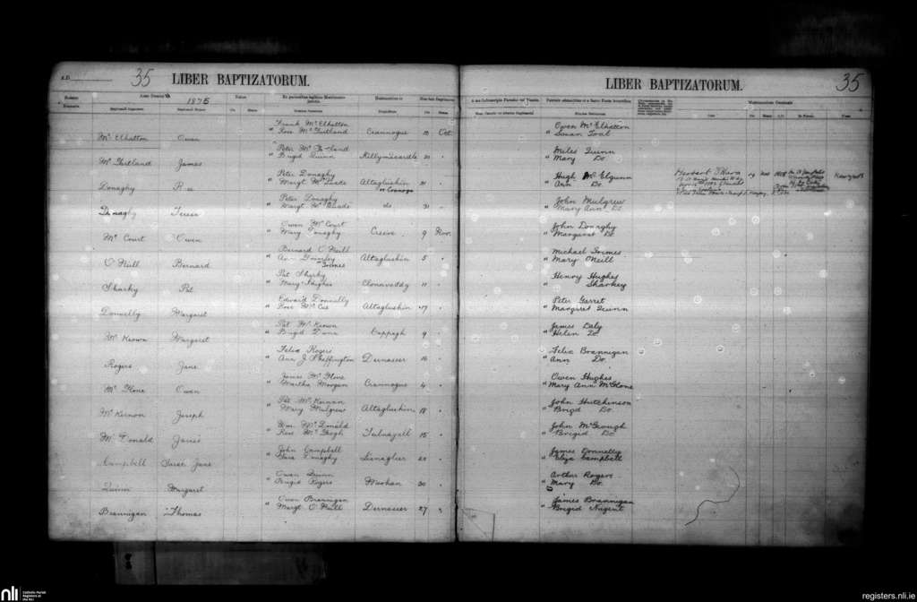 Donaghmore; County of Tyrone; Archdiocese of Armagh. Baptisms, Oct. 1875 to Nov. 1875