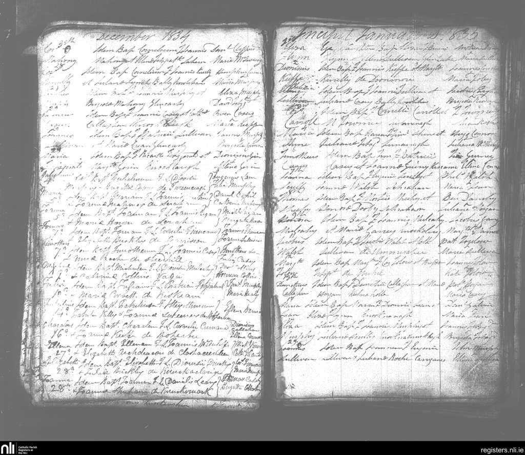 Boherbue; County of Cork, Kerry; Diocese of Kerry. Baptisms, Dec. 1834 to Jan. 1835