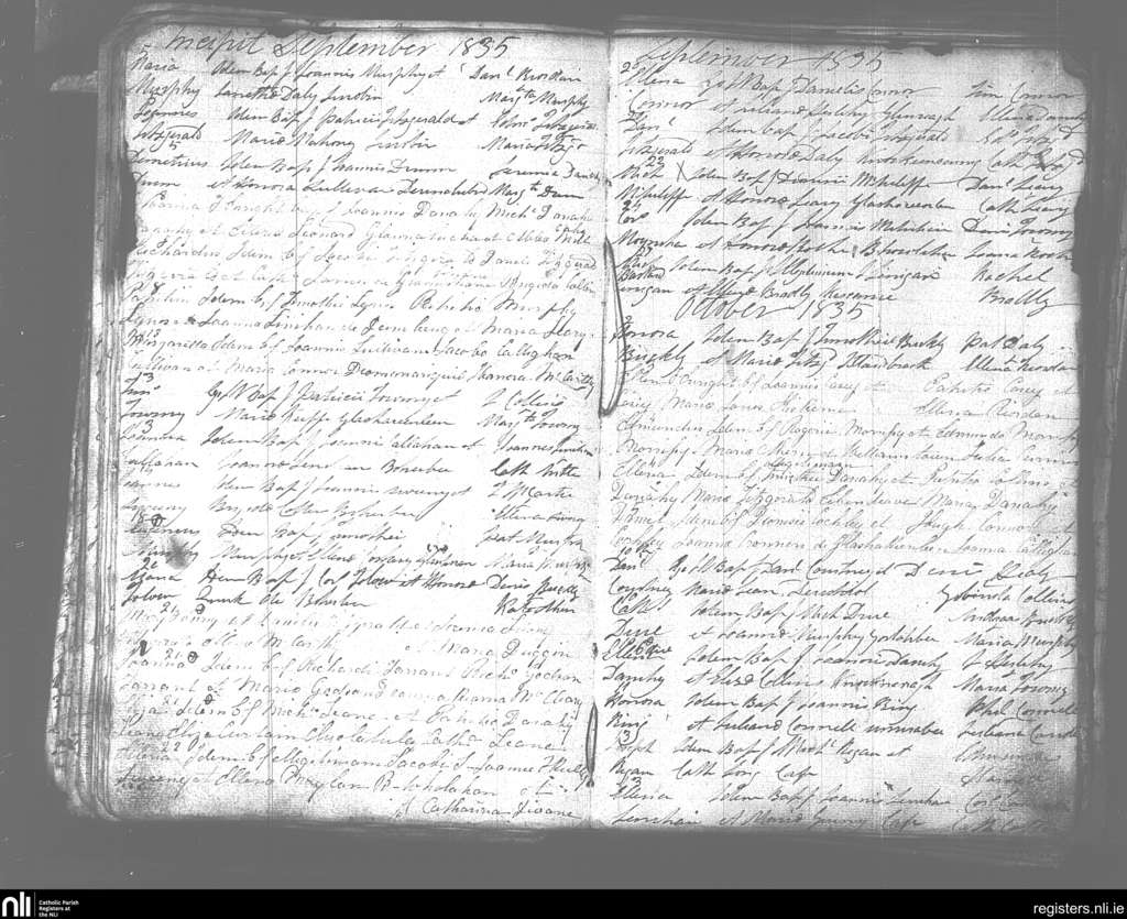 Boherbue; County of Cork, Kerry; Diocese of Kerry. Baptisms, Sep. 1835 to Oct. 1835