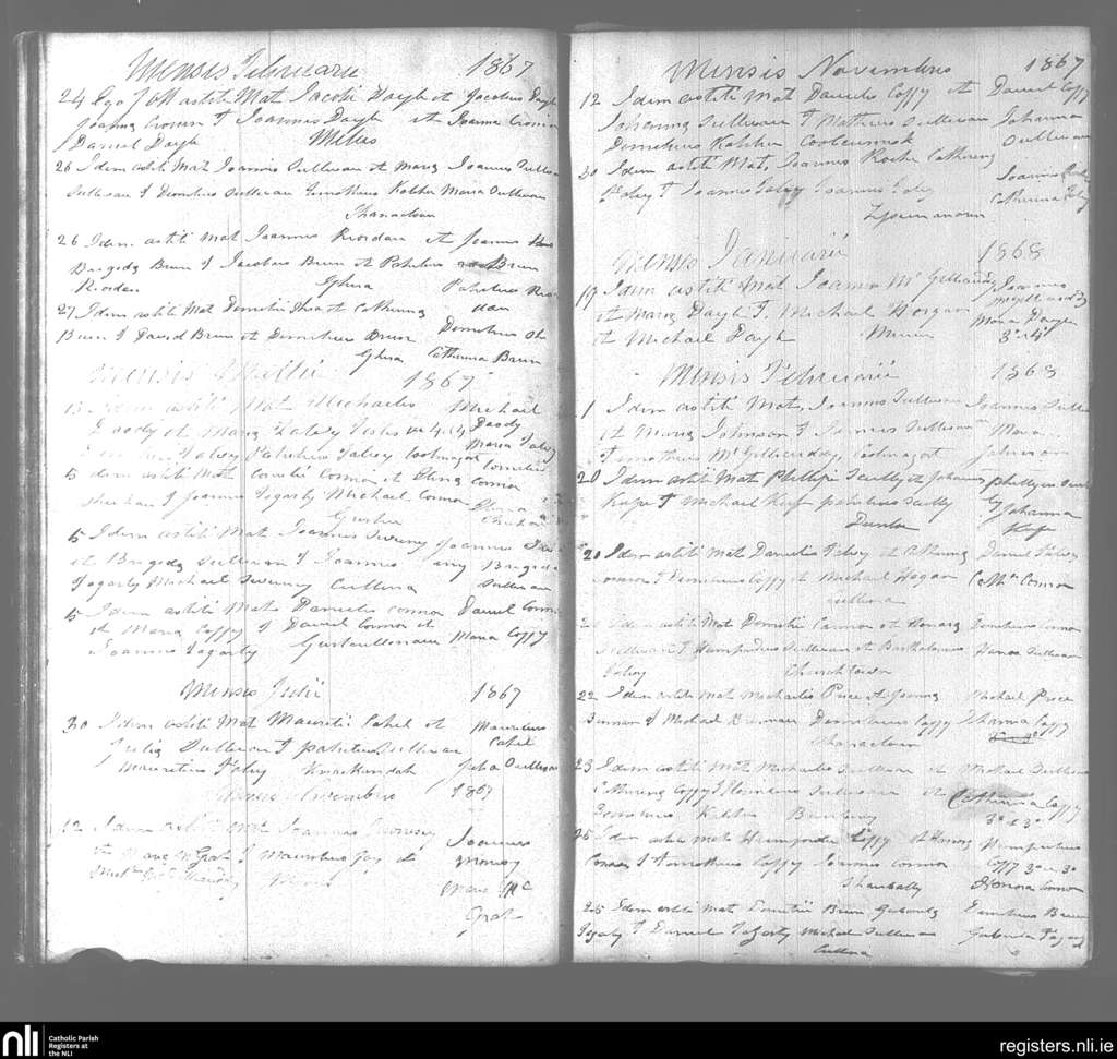 Beaufort; County of Kerry; Diocese of Kerry. Marriages, Feb. 1867 to Feb. 1868