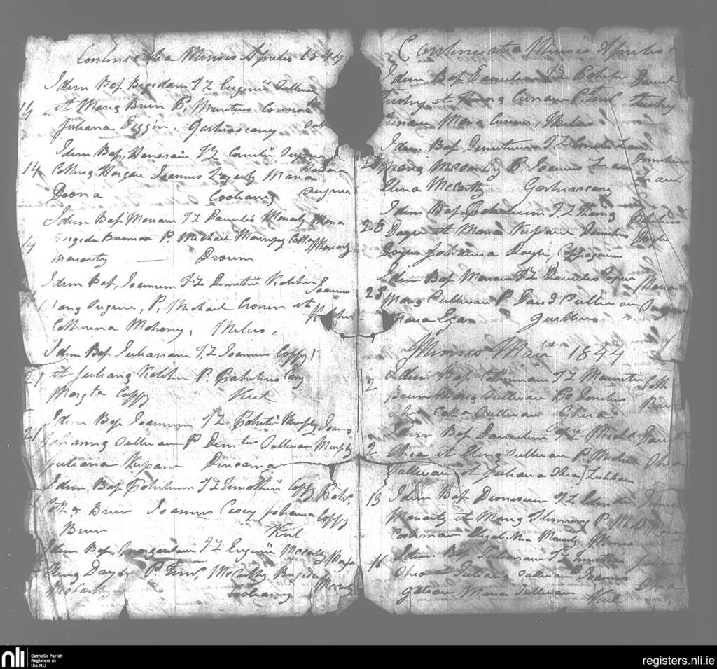 Beaufort; County of Kerry; Diocese of Kerry. Baptisms, Apr. 1844 to May 1844
