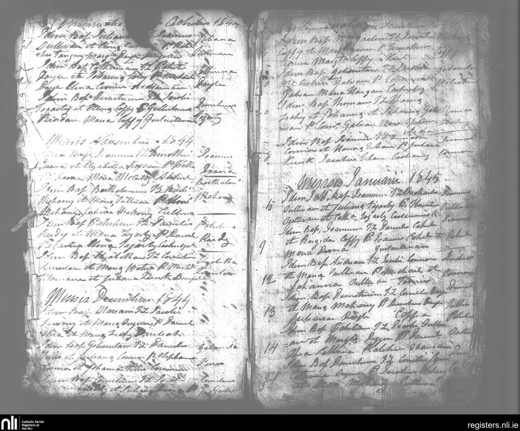 Beaufort; County of Kerry; Diocese of Kerry. Baptisms, Oct. 1844 to Jan. 1845