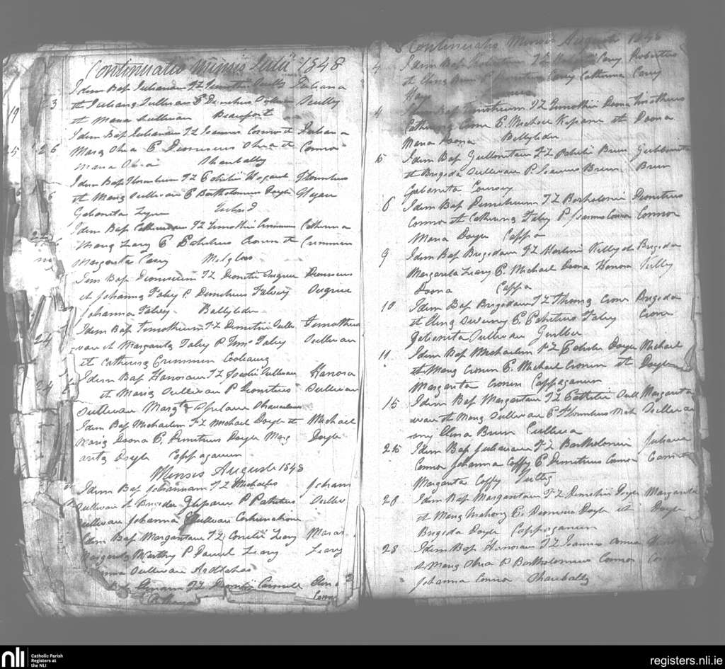 Beaufort; County of Kerry; Diocese of Kerry. Baptisms, July 1848 to Aug. 1848