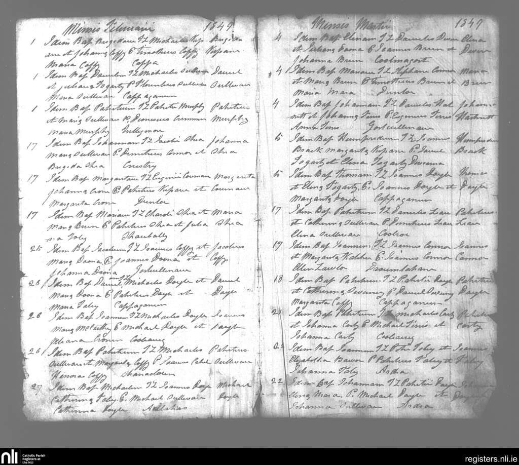 Beaufort; County of Kerry; Diocese of Kerry. Baptisms, Feb. 1849 to Mar. 1849