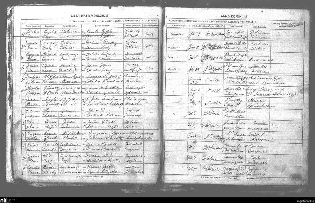 Boherbue; County of Cork; Diocese of Kerry. Marriages, Jan. 1872 to Feb. 1872