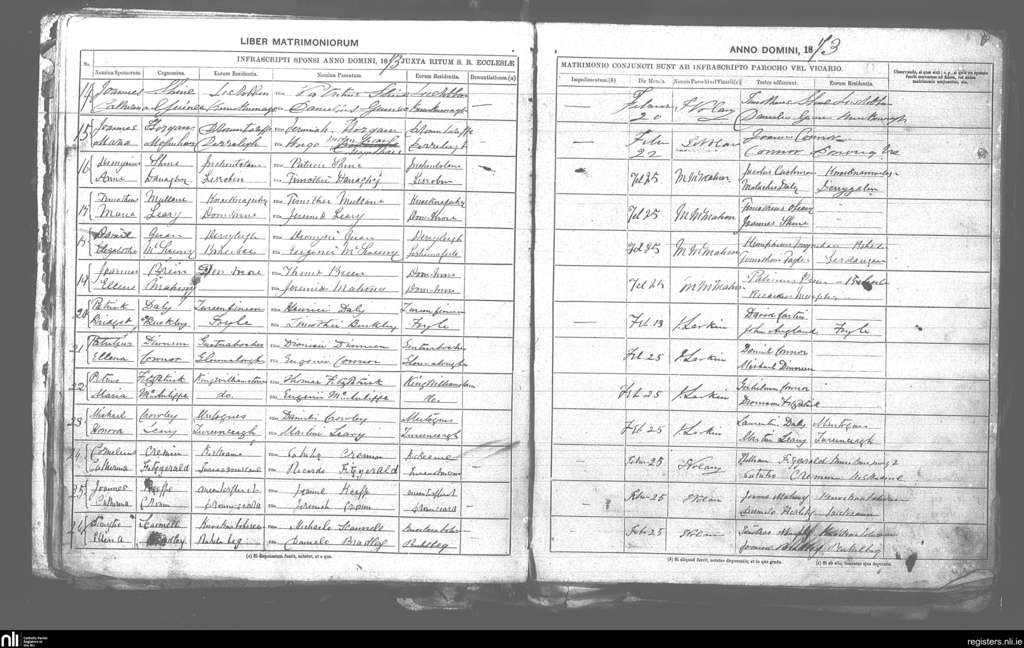 Boherbue; County of Cork; Diocese of Kerry. Marriages, Feb. 1873