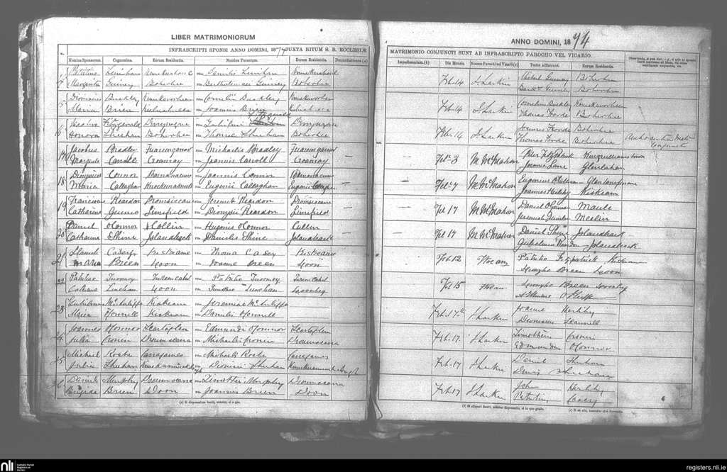 Boherbue; County of Cork; Diocese of Kerry. Marriages, Feb. 1874